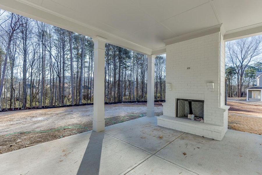 - Outdoor FireplaceBackyardLandscapingCabinetsFireplaceYardPorch