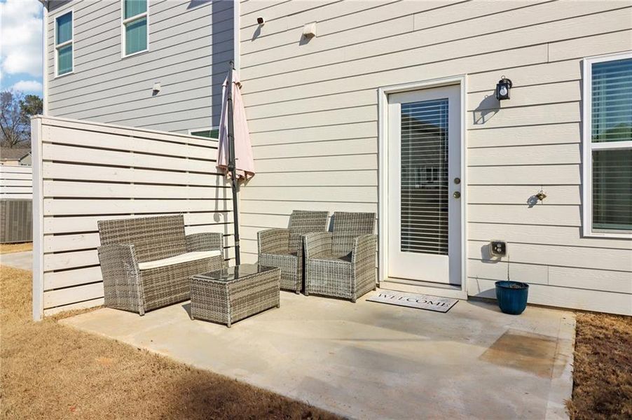 Lovely, like-new townhome offering spacious, open-concept living filled with natural light! The main level features a bright living room with a modern electric fireplace that adds warmth and ambiance. The open kitchen is beautifully appointed with wood-look tile floors, a large island with breakfast bar seating, stone countertops, tile backsplash, stainless steel appliances, and a pantry for added storage. A convenient half bath completes the main floor. Upstairs, retreat to the spacious primary suite with an en-suite bath showcasing dual sinks, a vanity area with seating, a separate soaking tub, and a glass-enclosed shower. Two generously sized secondary bedrooms and a full hall bath provide flexibility for family, guests, or a home office. The upstairs laundry room adds everyday convenience. Enjoy relaxing or grilling outdoors on the private back patio — perfect for low-maintenance living. Located in desirable Preston Towns in Powder Springs, this home offers the ideal blend of suburban charm and metro convenience. Just minutes from Downtown Powder Springs, residents enjoy local shops, dining, parks, and community events, along with easy access to the Silver Comet Trail for outdoor recreation. Convenient to US-278/CH James Parkway, the location provides seamless connectivity to Marietta, Smyrna, and Downtown Atlanta.