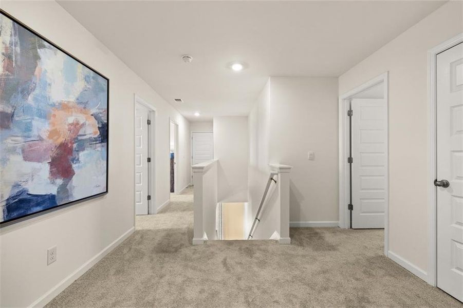 SWIM COMMUNITY, MINUTES FROM I-75, DINING & SHOPPING AT TANGER OUTLETS, UNBEATABLE VALUE! SPECIAL FINANCING CALL TODAY FOR LOW INTEREST RATE OPPORTUNITIES. The Galen plan at Cedar Ridge at Locust Grove Station is a two-story design with 4 bedrooms, 2 full baths and a powder room covering approx. 2,338 sq ft. The 2-car garage ensures plenty of space for vehicles and storage. Open the door to a flex room that could be a dedicated home office, a formal dining space for hosting and entertaining, or a secondary living room. The island kitchen flows into a casual breakfast area and effortlessly transitions into the spacious family room. Plus, there is an oversized pantry to stock with favorites. Upstairs includes a large bedroom suite that easily fits a king-size bed. The private ensuite bath is a must see, featuring extra space for storage, shower, separate garden tub and dual vanities so you don't have to share. The three secondary bedrooms each have generous closets and windows that help bring in natural light. A convenient laundry upstairs completes this traditional design. And you will never be too far from home with Home Is Connected. Your new home is built with an industry leading suite of smart home products that keep you connected with the people and place you value most. Photos used for illustrative purposes and do not depict actual home.