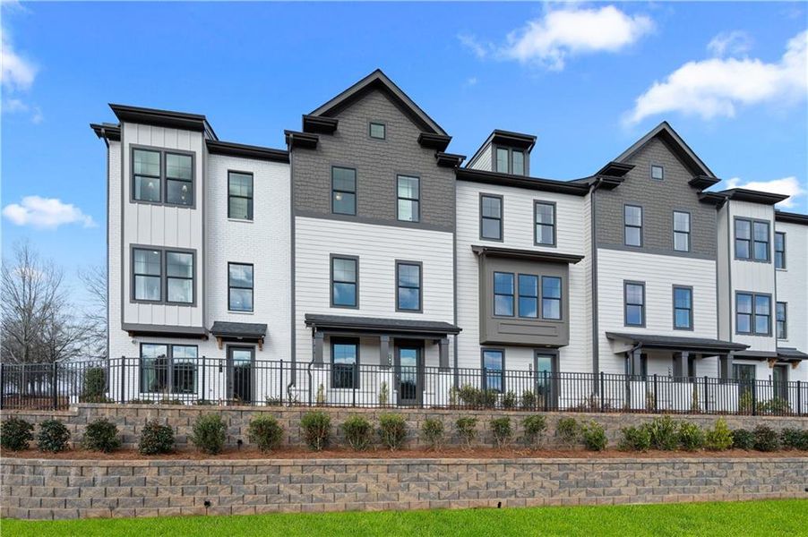 Welcome to Barrett Pointe by DRB Homes, an exclusive lakeside community where modern elegance meets refined living. Homesite 17 showcases the sophisticated Seaton plan, a beautifully curated townhome featuring 3 bedrooms, 2.5 baths, a rear-entry 2-car garage, and a bright, contemporary layout enhanced by upscale finishes. The lower level opens with a spacious gameroom—a versatile, light-filled space that can be transformed to suit your lifestyle, whether envisioned as a children’s playroom, a private movie room, a home gym, a hobby studio, or an inviting entertainment lounge. This level also offers direct entry to the garage for added convenience.. On the main level, soaring 10-foot ceilings create an open, airy environment that seamlessly connects the family room, gourmet kitchen, and breakfast area. The kitchen is a true centerpiece, appointed with stainless steel appliances, a gas cooktop and designer vent hood, quartz countertops, and a stylish tile backsplash. A sleek linear electric fireplace with a custom shiplap accent wall adds warmth and sophistication, while the private rear deck extends your living space outdoors. The upper level offers two well-appointed secondary bedrooms along with a serene owner’s suite featuring a tray ceiling, dual vanities, an expansive tiled shower, and a generous walk-in closet. A centrally located laundry room adds everyday convenience. Barrett Pointe provides a tranquil lakeside setting with a community dock, walking path, firepit seating, benches, and charming lakeside swings. As Kennesaw’s only new luxury townhome community with lake views, it offers a rare combination of serenity and accessibility—just one mile from I-75 and minutes from Kennesaw State University, Town Center Mall, restaurants, parks, and abundant outdoor recreation. With only 30 townhomes available, Barrett Pointe presents a limited opportunity to experience elevated living in an intimate, beautifully designed community. Come discover why this exceptional address is the perfect place to call home.