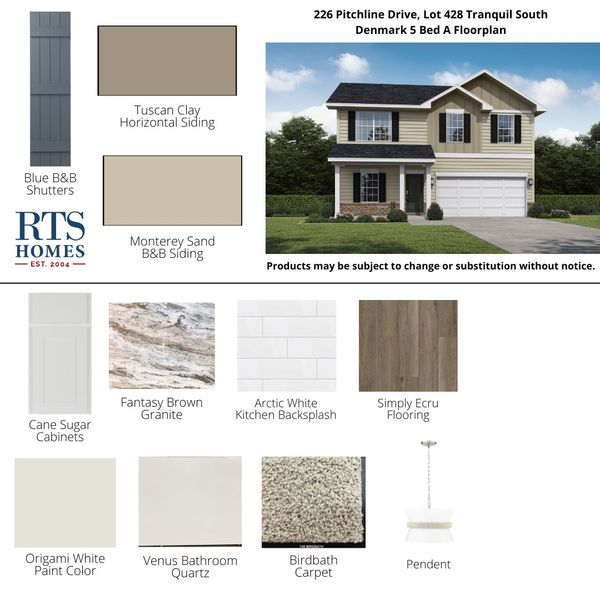 The Denmark plan located in the highly-sought after Tranquil South community features 5 bedrooms and 3 baths designed for modern living. The entryway opens to a cozy family room that flows into the dining area and a U-shaped kitchen, complete with a breakfast bar and stylish cabinetry. Upstairs, a loft connects four secondary bedrooms that share a full hall bath. The primary suite is a peaceful retreat with a garden tub, separate shower, and large walk-in closet. Artistic renderings are for illustrative purposes only. Actual floor plans, features, and inclusions may vary.