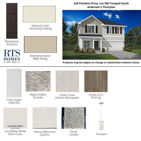 Step inside the Anderson plan located in Tranquil South! You'll love the Anderson because it combines form and function into one exquisite home. Entering from the foyer, you will first access the flex room - furnish as an office, second living space, the possibilities are endless! Continuing down a short corridor, you are greeted by an inviting kitchen with corner pantry and bar area for additional seating. The family room is visible from the kitchen - perfect for the modern family. Upstairs, the master suite features a spacious bedroom but the en-suite steals the show. A garden tub, separate shower, private toilet room and an expansive walk-in closet. Three secondary bedrooms share a hall bath. The laundry room is also located upstairs for convenience. Artistic renderings are for informational purposes only. Actual floor plans, features and inclusions may vary.