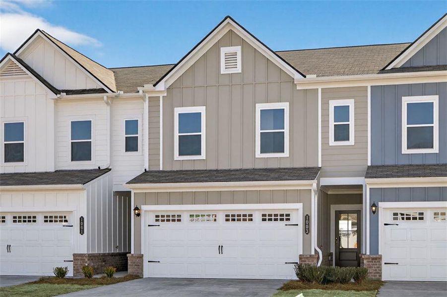 Move-in ready! The Norwood II floor plan by Smith Douglas Homes, located in the Townes At The Stiles community. Welcome to this beautiful new construction townhome in Cartersville, GA, featuring this thoughtfully designed 3-bedroom, 2.5-bath townhome offering modern finishes, functional living spaces, and low-maintenance living with lawn care included in the HOA. Upon entry, you’ll appreciate the owner’s entrance from the garage, complete with a convenient drop-zone, perfect for coats, bags, and groceries. The open-concept main level is ideal for everyday living and entertaining, featuring a well-appointed kitchen with a center island, upgraded cabinetry for additional storage, and Quartz countertops. The dining area overlooks the spacious family room, creating a seamless flow throughout the main living area. Nine-foot ceilings on both levels enhance the open and airy feel of this new construction townhome. The second floor is accessible via an open iron rail staircase and offers a versatile loft area, ideal for a home office, study space, or desk area. The upper level also includes a laundry room, two secondary bedrooms with a shared full bath, and a private primary suite. The primary bedroom features an ensuite bath, providing a comfortable and relaxing retreat with a garden tub and separate tiled shower. Located in The Stiles, a swim community in Cartersville, residents enjoy neighborhood amenities along with the convenience of lawn maintenance included, allowing more time to enjoy the lifestyle you love. This community offers easy access to shopping, dining, schools, and major highways. Seller incentives with use of preferred lender. Photos of home.