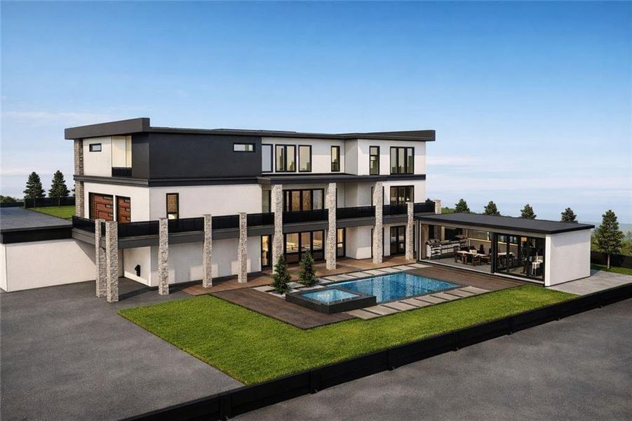 - NEW CONSTRUCTION*** MODERN LIVING*** POOL*** Extremely desirable close-in Mullberry location boasts top schools. Wonderful design includes: luxurious master with big Closet; open concept floor plan; spacious kitchen with separate Chef Kitchen/walk-in pantry; beautiful, private covered patio is accessible through huge sliding glass doors; laundry room upstairs; an flex space for gym/office; full finished daylight basement w/high ceilings, Master Bedroom with full Kithchen. There are beautiful views of mature hardwoods from almost all windows on this private lot. The front of the lot is level and there is a level area in the backyard. Home is in the finishing stage, All bedrooms have Balconys.Will have a pool house with Outdoor Kitchen. Modern Fence around the house with Private Gate NOTE: THIS IS A CONSTRUCTION SITE, PLEASE EXERCISE CAUTION WHEN WALKING THE PROPERTY. WE RECOMMEND YOU REACH OUT TO THE AGENT TO ARRANGE A TIME FOR THE BUILDER TO MEET YOU THERE.***