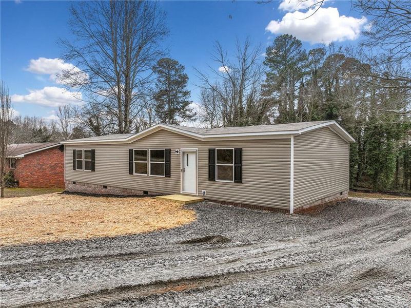 Beautiful New Construction Home in a desired location! This 2026 Model Clayton home boasts an open floor plan featuring an island kitchen complete with appliances, a sliding glass door, and an expansive living area. Three bedrooms and two baths provide ample room to grow. The home is situated on a large, well-designed lot with privacy in mind. The developer added personal touches for an upgraded home experience, such as beautiful brick underpinning, and an oversized driveway. No worries about parking here. Your new home, with no HOA, was designed with enough room to bring the boat or camper along, too. Come make this beautiful new home with private backyard yours today!