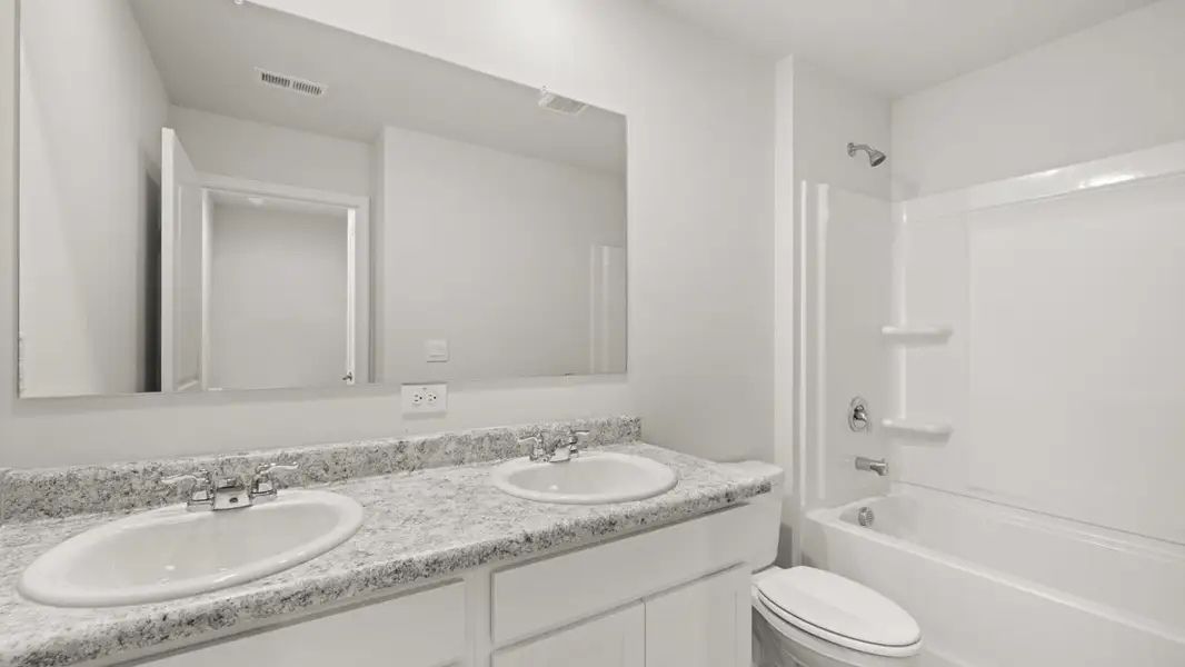 Up the stairs you'll run directly into the laundry room. To the right is the spacious primary suite bedroom. Homeowners can enjoy the luxury bathroom with dual vanity and a large walk-in closet. 3 additional bedrooms and a dual vanity bathroom make up the rest of the second floor.