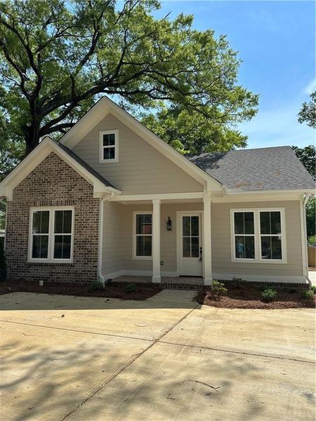 Custom-built new construction in-town cottage, conveniently located near everything Monroe has to offer! This beautifully crafted 2-bedroom, 2-bath home showcases high-end finishes and exceptional attention to detail throughout. Step inside to a stunning vaulted great room accented with decorative beams, creating a warm and inviting living space. The spacious kitchen features custom cabinetry, stainless steel appliances (including refrigerator), and elegant finishes perfect for everyday living and entertaining. A versatile flex room provides the ideal space for a home office, nursery, or additional guest area. The private primary suite and secondary bath both feature beautifully tiled showers and quality finishes. Custom closet shelving adds both function and organization. Enjoy outdoor living on the covered back porch with a stained wood ceiling, overlooking a professionally landscaped yard complete with sod and irrigation. Additional upgrades include white oak engineered hardwood floors, spray foam insulation in the attic for energy efficiency, and durable Hardie board and brick exterior for lasting curb appeal. The quality of this home is undeniable the moment you walk through the front door. Pictures coming soon!