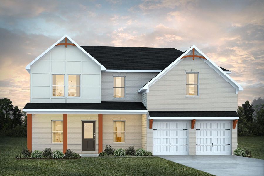 The Harding Plan boasts a contemporary and spacious layout, fostering family togetherness while allowing for individual space. The upper level hosts four bedrooms, including a generously sized primary suite with sitting area and fireplace. On the first floor, a versatile flex room awaits, serving as a bedroom, office, dining area, or any other desired purpose. The kitchen is meticulously designed, providing a delightful vista of the dining and living area. Prepare to be captivated by this thoughtfully arranged abode!