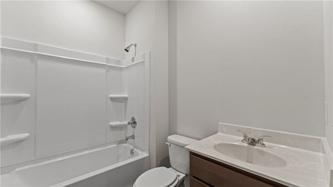 The walk in laundry room gives easy access for all. The second bedroom is ample-sized and boasts a walk-in closet and second bathroom with tub/shower combo and single sink.