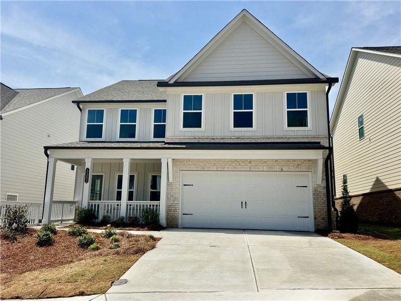 The Pembroke, featuring the Serene Design Collection is a spacious 2-story single-family home offers 5 bedrooms, 4 bathrooms, that includes a main-level guest retreat—perfect for working from home or having guests. Just off the garage, a mudroom provides a practical drop zone, while a nearby full bath serves guests with ease. At the heart of the home, the open-concept kitchen flows seamlessly into the family room, creating an ideal setting for both quiet nights in and lively gatherings. Upstairs, you’ll find all four bedrooms thoughtfully arranged for comfort and privacy. The generous primary suite includes a walk-in closet and a private bath. Two bedrooms share a bathroom, while the fourth bedroom features its own en-suite. Located in the heart of Flowery Branch near the scenic shores of Lake Lanier, Eastlyn Crossing offers a stunning collection of single-family homes and townhomes in a vibrant community. Enjoy the charm of historic downtown Flowery Branch, where you can stroll through unique boutiques, relax in cozy cafés, and browse the local farmer’s market. Spend your days exploring nearby attractions, from Alberta Banks Park’s tennis courts and playgrounds to the recreational opportunities at Lake Lanier Islands, including hiking trails, golf, waterslides, and lakeside dining. Closer to home, residents can relax by the cabanas at the pool or enjoy a friendly game on the pickleball courts. At Eastlyn Crossing, you’ll find the perfect balance of comfort, connection, and adventure. This home has a projected delivery date of April 2026. HOME IS CURRENTLY UNDER CONSTRUCTION. For further details and information on current promotions, please contact an onsite Community Sales Managers. Please note that renderings are for illustrative purposes, and photos may represent sample products of model homes or homes under construction. Actual exterior and interior selections may vary by homesite.