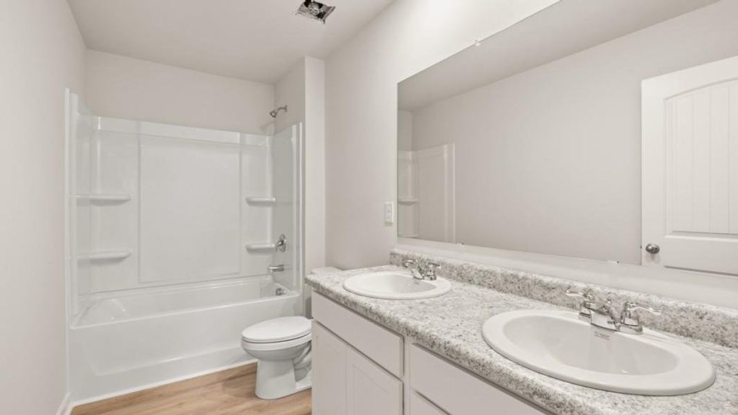 Introducing 3033 Manor Hill Place a two-story home in our Union City, GA community of Pointe Park. This Robie floorplan home features 5 bedrooms and 3 bathrooms, plus a 2-car garage in 2,361 square feet. Through the front door, a foyer will welcome guests passed the stairway into the main living area. The open family room allows room for a dining table to enjoy meals with loved ones or to relax after a hard day's work in front of the gas fireplace. A large island separates the kitchen from the living area providing space to enjoy a quick meal or prepare food for the family. The kitchen is well equipped with white shaker style cabinets with soft close doors, granite countertops, stainless-steel appliances, and a walk-in pantry. A spare bedroom and bathroom sit off the kitchen. Once you head upstairs, you are greeted by an open loft area that allows easy access to the 4 remaining bedrooms in the house, including the primary suite. The primary bedroom offers rest and relaxation with the deluxe bathroom featuring dual vanity, walk-in closet, and separate soaking tub and walk-in shower. Homeowners will enjoy easy access to the laundry room on the second floor, right outside the primary suite. If 3033 Manor Hill Place sounds like your dream home, call our listing agents at Pointe Park to make it yours!