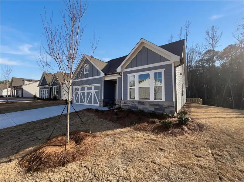 Welcome to 4 Mayhaw Pt in Sharpsburg—an inviting open layout perfect for everyday living and entertaining. The charming exterior features modern craftsman curb appeal, a spacious driveway, and a 2-car garage. Inside, enjoy wide-plank flooring, recessed lighting, and a bright, airy main level. The chef-inspired kitchen is the centerpiece, showcasing crisp white cabinetry, a large island, stainless steel appliances, and plenty of counter and storage space—flowing seamlessly into the dining and family room. The family room is filled with natural light and anchored by a cozy fireplace, creating a warm gathering space. Sliding doors lead to the backyard, offering room to relax and enjoy the wooded backdrop. Candleberry Place is an amenity-rich community offering low-maintenance living in Sharpsburg, GA. Homeowners can enjoy community amenities including a resort-style swimming pool with furnished cabanas, a convenient pool house and walking trails perfect for daily exercise. Conveniently located near shopping, dining, and commuter routes.. Included 100-Day Home Warranty with buyer activation