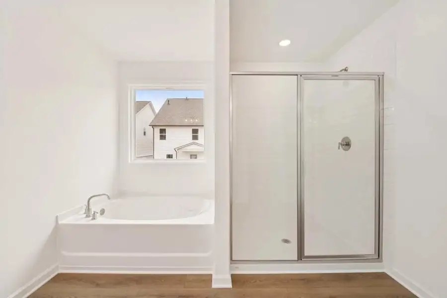 Welcome to the Hampstead, a captivating home featuring a main-level bedroom with a full bath and an impressive open-concept living area. The kitchen shines with a spacious island and a large walk-in corner pantry, offering plenty of storage and prep space. The inviting family room features a beautiful fireplace and opens to the covered patio—perfect for relaxing or entertaining. Upstairs, the serene primary suite offers a spa-inspired bath with a double vanity, separate tub, walk-in shower, and an expansive walk-in closet. The second level also includes a centrally located oversized laundry room and three generous secondary bedrooms. Two of the bedrooms share a Jack-and-Jill bath, while the third enjoys its own private bath, and each bedroom features a walk-in closet.