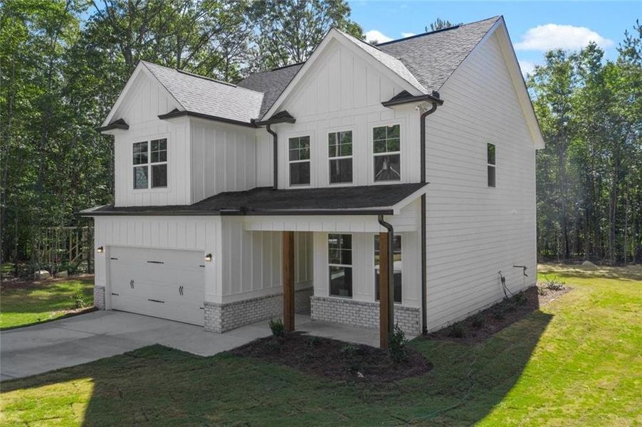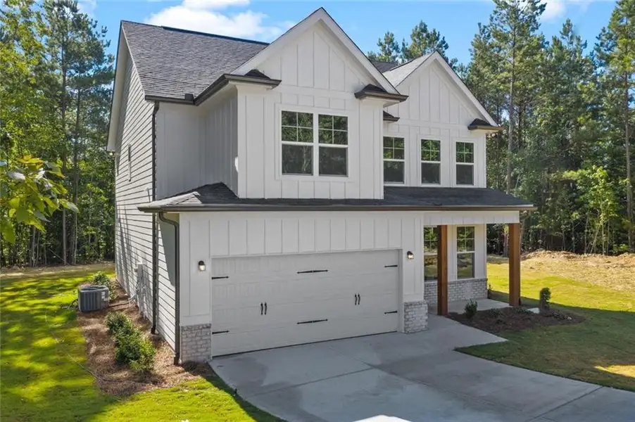 Welcome home to Birchwood Farms. ENJOY NO HOA OR FEES! This gorgeous Noah plan sits on a professionally landscaped lot and includes 4 bedrooms, 2.5 baths, a two-car garage and basement! This open concept plan features a foyer that leads to the grand great room which offers a decorative fireplace with shiplap surround and views to the chef's kitchen. The kitchen offers a perfect layout for the chef in the family, with plenty of usable counterspace, a large island and ample cabinetry. The kitchen also offers sleek stone countertops and amazing exterior views with access to the exterior back deck perfect for grilling in the Summer or a perfect place to unwind. Upstairs find 3 spacious guest bedrooms, guest bath, laundry room and primary suite. The primary suite is a perfect retreat with an ensuite bath including his and hers vanities, glass framed tile shower and access to the oversized walk-in closet. This home is located in the Birchwood Farms community located in a top school district, Burnt Hickory Elementary, Sammy McClure Middle, North Paulding High School and convenient to great shopping, dining, entertainment and major roadways. CALL TODAY, for more information about our exclusive builder promo rate, first time home buyer programs and selections your family can still customize on this home while available!