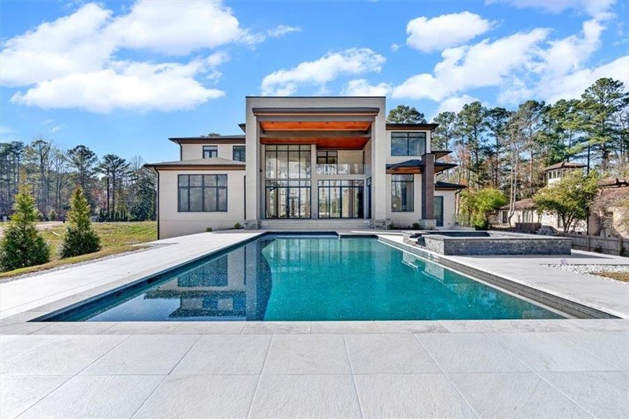 • Architectural Entry: Prospective buyers will be captivated from the moment they pass through the distinguished front entry to view the sculptural floating staircase with all Glass Handrails and the sleek, resort-style pool through floor-to-ceiling vistas.