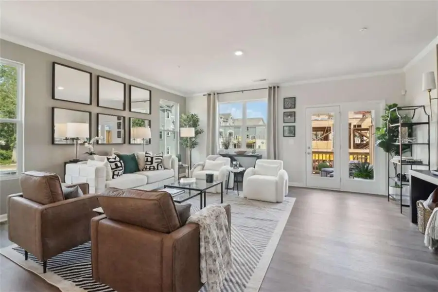 Welcome to The Overlook at Peachtree Corners, where modern design meets everyday convenience. This brand-new, three-story townhome offers 4 spacious bedrooms, 3 full bathrooms, and a convenient half bath, perfectly designed for today's lifestyle. The open-concept main level is bright and inviting with Revwood flooring throughout the main living area, featuring a contemporary kitchen with 42" soft-close cabinetry, quartz countertops, a large center island, and stainless-steel appliances, ideal for both entertaining and daily living. The top-floor owner's suite provides a private retreat with an en-suite bath and a generous walk-in closet. Two additional upstairs bedrooms share a full bath, while the lower-level bedroom offers flexibility as a guest suite, home office, or private retreat. Ideally located in the heart of Peachtree Corners, enjoy quick access to I-285 and I-85, premier shopping at The Forum, and a wide variety of dining and entertainment options. Additional highlights include a rear-entry two-car garage, low-maintenance living, and stylish finishes throughout. This townhome delivers the perfect blend of convenience, style, and location-modern living close to everything you love.