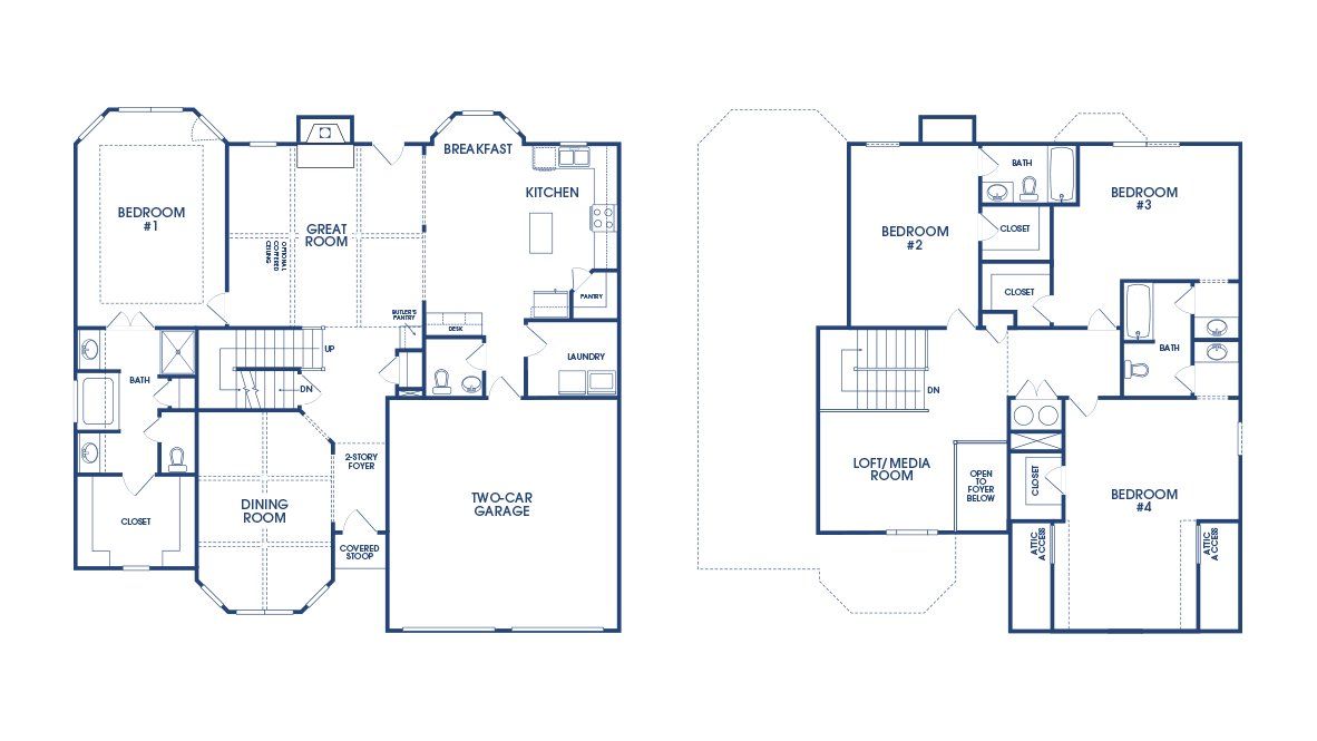 For the ultimate in convenience, this design offers a private primary suite on the main with extra space for a sitting area plus a spa-like bath with dual vanities, separate garden tub and shower. The family room includes a built in task desk and opens to the casual breakfast space for morning meals and quick bites. An island kitchen features stainless steel appliances, contemporary cabinetry and quartz countertops. And for weekend gatherings and hosting the holidays, you’ll have space for everyone in the expansive formal dining room off the foyer.