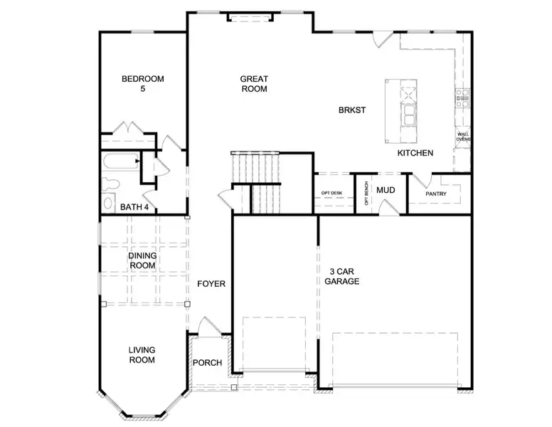 Open concept kitchen with oversized quartz island overlooking the breakfast area and family room.