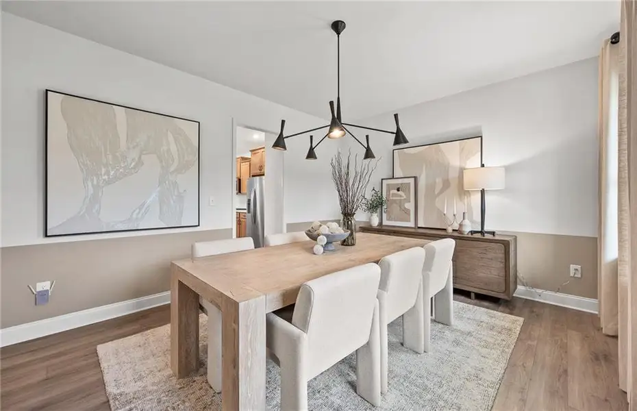 Welcome home to Berkeley Mill, Forsyth County's highly desired new construction community in Cumming, Georgia. This stunning Mitchell plan offers the perfect blend of style and functionality. The main level features an expansive kitchen with an oversized island, brown quill cabinetry, quartz countertops, and luxury vinyl flooring throughout. The open-concept design flows seamlessly into the gathering room—perfect for entertaining family and friends. A bright sunroom adds additional living space, while the first floor also includes a private guest suite with a full bathroom.