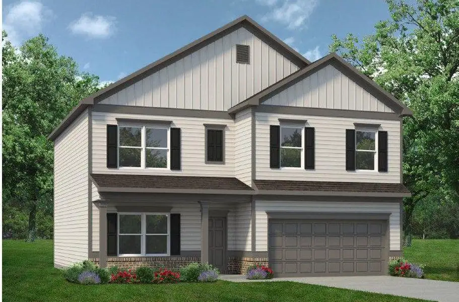 Move-in Ready July! The McGinnis plan in the highly sought-after Saddle Ridge community, built by Smith Douglas Homes—a beautiful swim community designed for comfort, convenience, and modern living. This top-selling two-story home welcomes you with a wide entry foyer that leads into a bright, open-concept layout. The spacious kitchen and family room are positioned at the rear of the home, offering seamless flow to the covered patio. The kitchen features stainless steel appliances, a large center island, upgraded cabinetry, and elegant quartz countertops. The family room includes a sleek modern linear fireplace for a stylish focal point. The main level also offers a designated office with interior French doors—perfect for remote work—along with luxury vinyl plank flooring throughout the entire first floor. Upstairs, the private Owner’s Suite sits at the back of the home and includes an oversized walk-in closet and a spa-inspired bath with an extra-large shower and separate linen closet. Three generously sized secondary bedrooms, each with its own walk-in closet, plus an open loft and roomy laundry area complete the second floor. Additional upgraded windows were added in both the breakfast nook and family room to enhance natural light. Enjoy nine-foot ceilings on both levels and take advantage of the community’s LOW HOA fees. Stunning new construction in a prime location—don’t miss this opportunity! Seller incentives with use of preferred lender. Photos representative of plan not of home.