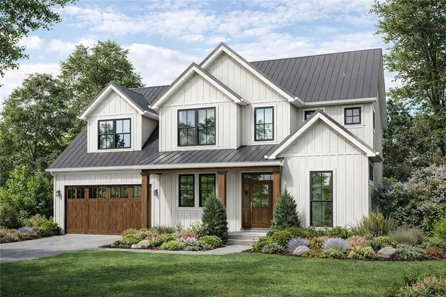 Welcome to your dream home, where new construction and modern design meets peaceful country living. Nestled on a spacious 0.72 acre lot in a quiet, private residential setting, this stunning modern farmhouse offers the perfect blend of tranquility and convenience. Enjoy a large flat backyard great for entertaining, and the rare benefit of no HOA, all just minutes from local schools and everyday conveniences. Step inside to a thoughtfully designed open floor plan featuring a bright two-story foyer that sets the tone for the home's airy feel. A private den offers flexibility for a home office or guest suite, while the expansive great room is anchored by a striking statement fireplace perfect for gathering and entertaining. At the heart of the home, the gourmet kitchen impresses with a large center island, stainless steel appliances, a walk-in pantry, and seamless flow into the dining area. Best of all, you still have the opportunity to personalize your finishes, work alongside a designer to truly make this home your own. The main level also features a functional mudroom with built-in seating, a full bath, and access to an oversized two-car garage complete with an adjoining workshop, perfect for hobbies, storage, or projects. Upstairs, the primary suite showcases beautiful windows, a vaulted ceiling, with the primary bath offering a soaker tub and separate shower with double vanities for a relaxing retreat. Generously sized secondary bedrooms offer comfort and convenience with their own bathroom access. Outdoor living shines with a spacious 30-foot rear porch, ideal for year-round enjoyment. Built by Trailside Equities, known for high-quality craftsmanship and a client-focused experience, this home offers a rare opportunity to get in early and customize your interior and exterior selections, customize a pool, or outbuilding to complete your full service experience. Anticipated Completion: October 2026 Don't miss your chance to create a home that's uniquely yours, inside and out.