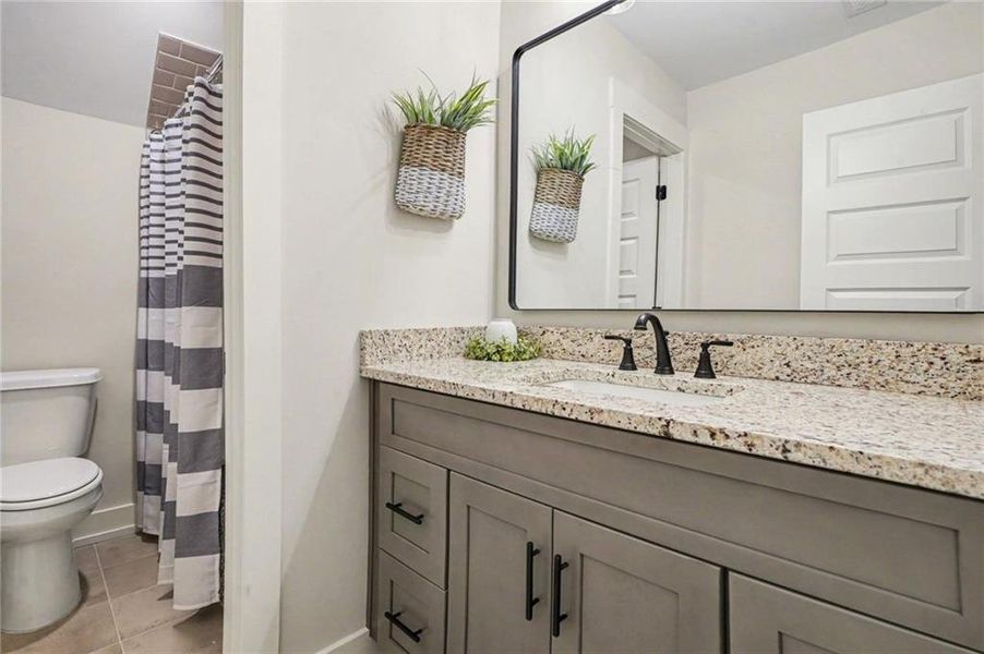 Secondary bathrooms are equally well-appointed with tile flooring, granite counters, and ceramic tubs with tile surrounds. Upstairs, a massive 18' x 33' bonus room provides endless possibilities—media room, playroom, home gym, or additional living space.