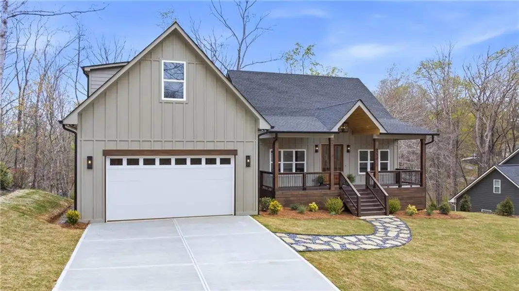 Welcome to this stunning, brand-new custom home offering seasonal views of Lake Lanier and the Blue Ridge Mountains. Designed with both comfort and entertaining in mind, the open-concept living area features a spacious kitchen with a large island and high-end finishes throughout. The primary suite is a true retreat, complete with a spa-inspired en-suite bathroom featuring a luxurious rain shower and soaking tub. On the opposite side of the home, you’ll find two generously sized bedrooms with a shared bath. Above the garage, a versatile bonus room includes its own private en-suite—perfect for guests or additional living space. Located in a gated, family-friendly community rich in history as a former hunting and fishing camp, residents enjoy exclusive access to community docks and a wide array of amenities. These include a clubhouse, Olympic-size pool, tennis and pickleball courts, a half-court basketball area, horseshoe pits, boat trailer parking, a community boat ramp, and trash service. Conveniently situated near Highway 400, Toto Creek Park, Chestatee Golf Club, North Georgia Premium Outlets, and the charming towns of Dawsonville, Dahlonega, and Gainesville, this home offers easy access to shopping, dining, wineries, and entertainment.nExperience the perfect blend of peaceful lake living and modern convenience in this exceptional property.