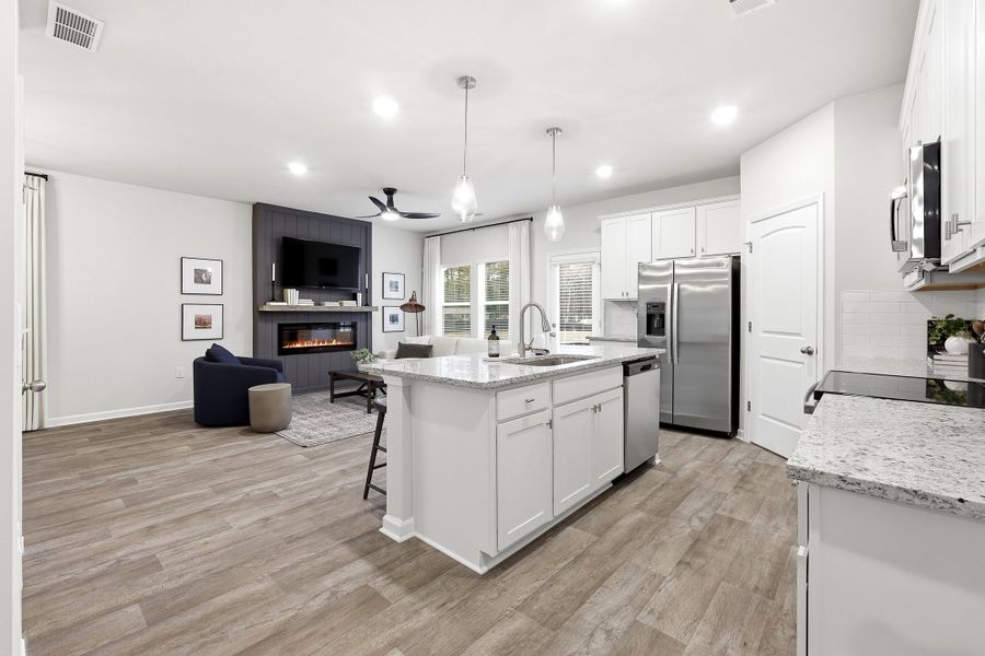 Welcome to the Morgan, a thoughtfully designed townhome that combines comfort and style. This home features a two-car garage and an open-concept layout where the living room flows seamlessly into the kitchen, creating the perfect space for entertaining or relaxing. A convenient half bath and a large patio complete the main floor. Upstairs, the laundry room is ideally located near all bedrooms for ease. Three secondary bedrooms share a full bathroom on one side, while the spacious primary suite offers a private retreat with a luxurious bathroom featuring a stand-alone tub, LED mirrors, and a large walk-in closet for ultimate convenience and comfort.