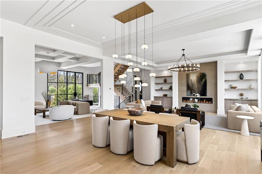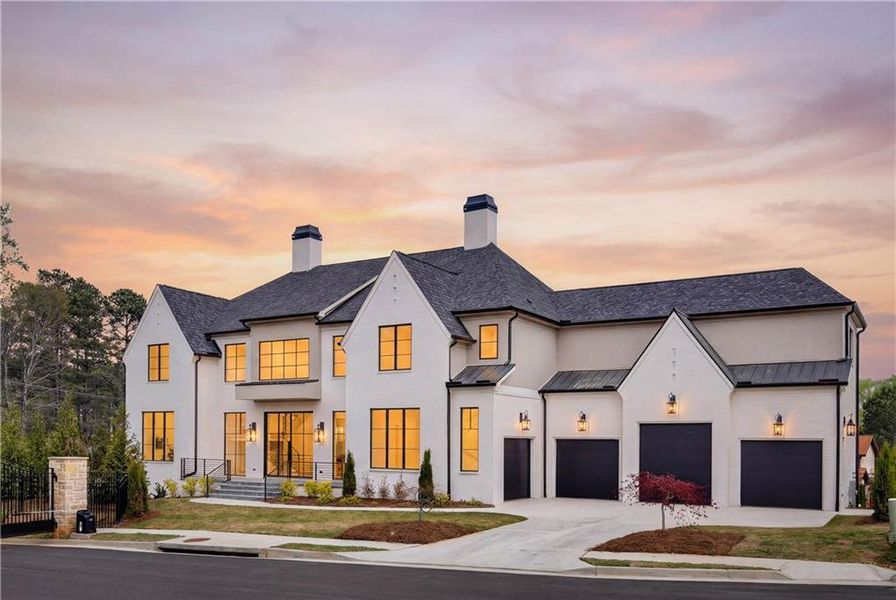 Set within a picturesque gated enclave of just four residences and located in the coveted Walton High School District, this newly constructed estate by Capital Design Homes presents a compelling blend of architectural clarity, scale, and refined livability. A striking four-sided brick façade and steel-framed entry doors introduce interiors defined by clean lines and thoughtful openness. The main level unfolds with a seamless, light-filled floorplan, anchored by a dramatic floating staircase that artfully connects all three levels. Formal and informal living spaces are equally considered—an elegant living room, and a fireside family room with a modern fireplace and bespoke built-ins, all framed by a wall of oversized, floor-to-ceiling windows that draw the eye to the rear grounds and resort-caliber pool beyond. The kitchen is both statement and utility, appointed with two-toned custom cabinetry, an expansive island, stone surfaces, and a suite of professional-grade appliances, including an integrated wine column. A concealed scullery discreetly expands functionality with additional appliances and extensive storage, allowing the primary kitchen to remain pristine for entertaining. Adjacent, a well-positioned mudroom connects seamlessly to the four-car garage, while a covered and uncovered deck extends the living experience outdoors with ease. The main level is completed by a private office and a generously sized ensuite guest suite. Upstairs, an open-concept loft with custom built-ins provides an ideal secondary living space, equally suited for a media room, lounge, or game area. Four ensuite bedrooms, each thoughtfully scaled, are complemented by a dedicated laundry room. The primary suite is a true retreat, offering substantial proportions and a separate sitting room. Its spa-caliber bath is meticulously appointed with dual vanities, a dedicated makeup vanity, a freestanding soaking tub, and a frameless glass shower with dual entry points. Dual walk-in closets complete the suite with both function and refinement. The terrace level is designed for elevated entertaining, featuring a fully equipped secondary kitchen to service both indoor and poolside gatherings, expansive open living areas, and an additional ensuite guest suite. Outdoors, the experience is equally compelling—a resort-inspired pool and spa serve as the centerpiece, complemented by a dedicated pool bath, creating a setting that effortlessly supports both intimate daily living and large-scale entertaining. A rare offering where design, execution, and setting converge, delivering a level of finish and lifestyle seldom achieved in new construction within East Cobb.