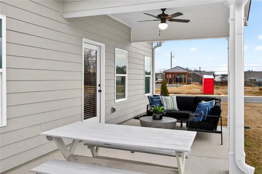Move in Ready this May! The Pearson plan by Smith Douglas Homes is located in Southbend, a beautiful swim community. From the moment you arrive, the inviting front porch sets the tone for relaxed Southern living. Inside, you’ll find a bright and spacious dining area that seamlessly connects to a chef-inspired kitchen featuring 42-inch cabinets, granite countertops, a large center island, and ample storage—perfect for entertaining, meal prep, and everyday living. The open family room is filled with natural light and provides easy access to the rear covered patio and backyard, ideal for outdoor gatherings and quiet evenings.