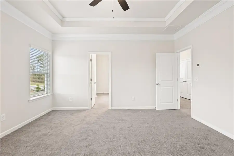 - Ceiling-HighWalk-In ClosetShuttersCrown MoldingFoyerPantryTray CeilingLoftSeparate ShowerDouble Vanity