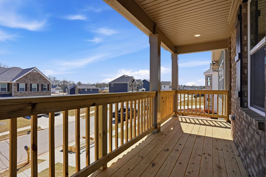 The Jodeco Double Deck, a thoughtfully designed two-story home that blends comfort, flexibility, and inviting outdoor living. From the moment you arrive, you’re welcomed by a charming covered front porch—perfect for relaxing mornings or evening gatherings—mirrored above by a second covered porch accessible from the upstairs hallway and visible from the fourth bedroom, creating a unique and elevated outdoor retreat.Inside, the main level features a bright open-concept layout where the living area flows seamlessly into the kitchen, making it ideal for both everyday living and entertaining. A convenient half bath is located on the first floor, along with a versatile flex room just off the entry—perfect for a home office, playroom, or creative space tailored to your lifestyle. The home also includes a spacious two-car garage for added convenience.Upstairs, you’ll find all four bedrooms, including a generous primary suite complete with a private bathroom and a walk-in closet. Three additional bedrooms provide ample space for family or guests, while the centrally located laundry room adds everyday ease and efficiency. The Jodeco Double Deck offers a perfect balance of style, function, and comfort—designed to meet the needs of modern living while providing inviting spaces both inside and out.