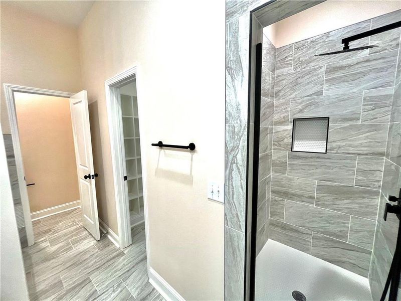 - Ceiling-VaultedWalk-In ClosetFoyerSeparate ShowerDouble Vanity