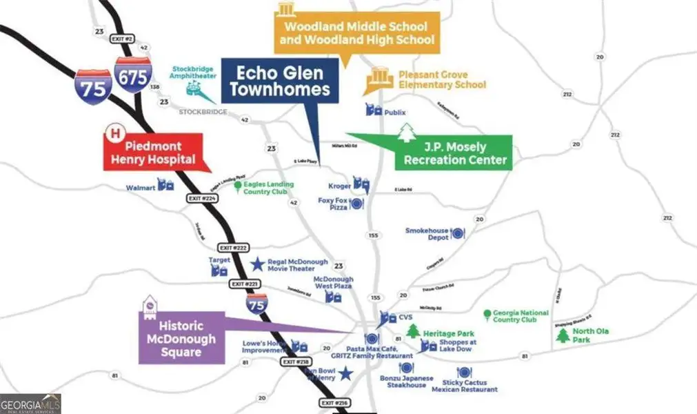 Welcome to Echo Glen-an exceptional townhome community ideally located just minutes from I-75, premier shopping, dining, and Piedmont Henry Hospital. Residents enjoy amenities including scenic walking trails, covered pavilions, playgrounds, grilling stations, a fire pit, water fountain, and a dog park. Introducing the beautifully designed "Salisbury" floorplan, offering 3 bedrooms/2.5 bathrooms and a thoughtfully designed open-concept layout perfect for modern living. The main level features a spacious family room, a designated dining area, and a stylish island kitchen-ideal for both everyday living and entertaining. Step outside to enjoy a full rear patio, perfect for relaxing or hosting guests. A 2-car front-entry garage adds both convenience and curb appeal. Interior highlights include quartz countertops, tiled showers, marble bathroom vanities, soft-close cabinetry, and designer backsplash options. Choose from elegant white or gray cabinet finishes to match your style. Stay seamlessly connected with the included Home Is Connected smart home package, offering convenience, security, and peace of mind. Upstairs, retreat to a private owner's suite featuring a spa-inspired bath with a garden tub and separate shower, double vanity, and His & Her walk-in closets. The secondary bedrooms are thoughtfully designed with ample space. Special Incentives Available! Contact Davida Edwards at 404-484-1783. Please note: Photos are of a decorated model or similar home for illustrative purposes and may not reflect the actual property. Pricing, incentives, and features are subject to change without notice. Schedule your tour today!