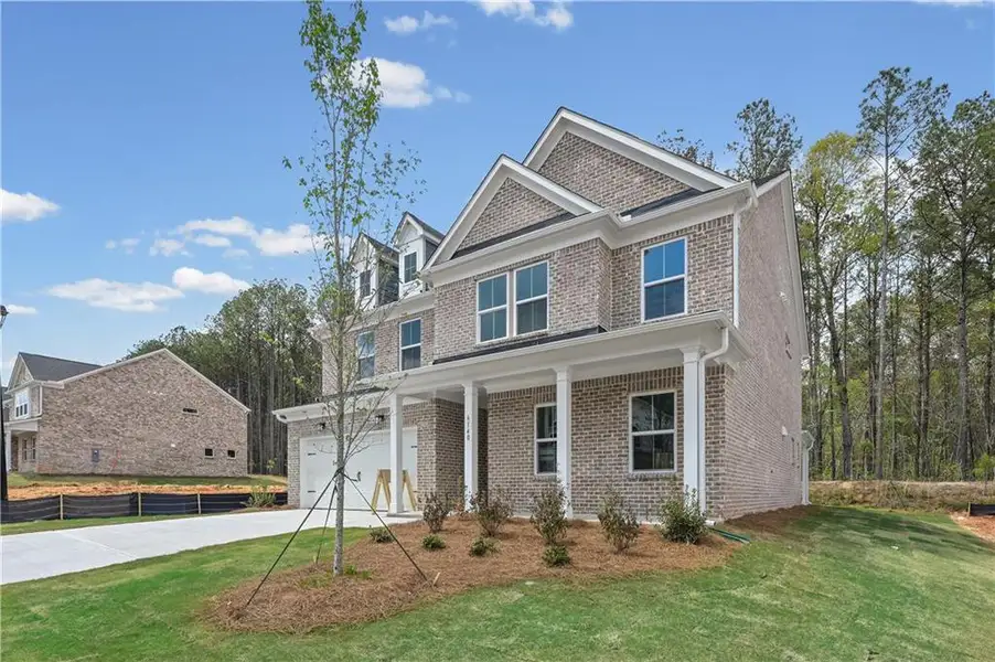 The kitchen showcases sleek quartz countertops, bright white cabinetry, and stainless-steel appliances offering a modern look with everyday practicality. A main-level bedroom paired with a full bath provides ideal accommodations for guests or multi-generational living. Upstairs, a generous loft offers additional living or recreation space, complemented by a conveniently located laundry room and spacious secondary bedrooms, each with walk-in closets. The owner’s suite stands out with its elegant tray ceiling, a private sitting room perfect for relaxing or creating a personal retreat, and an expansive walk-in closet. Outdoors, enjoy a serene, wooded backyard that provides rare privacy and a peaceful natural backdrop perfect for relaxing evenings or hosting friends and family. Situated in the Briar Creek community, residents benefit from a quiet suburban atmosphere while remaining close to shopping, dining, the new Grady Emergency Center just minutes away, and Hartsfield-Jackson International Airport within a short drive. Available Spring 2026. Experience the perfect balance of space, comfort, and privacy in this thoughtfully designed Mitchell plan. Photos shown are of a model home and may include optional features not included in the listed property.