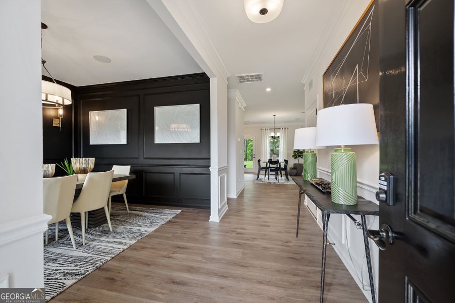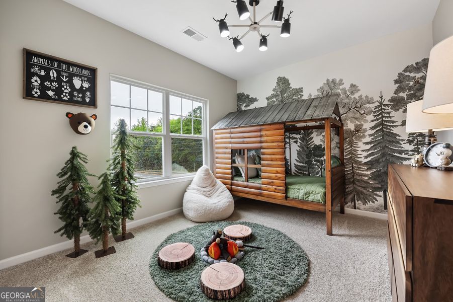 Move in Ready August 2026! The McGinnis plan by Smith Douglas Homes in the community Maddox Station. This beautifully crafted home offers the perfect blend of modern comfort and thoughtful design. A charming covered front porch welcomes you inside, where a flexible front room has been converted into a dining room, adding both function and style to the layout. The main level features an open concept living space anchored by a stunning kitchen with a large island, sleek granite countertops, and abundant cabinetry. The adjoining family room feels warm and inviting with its contemporary electric fireplace, while the breakfast nook is brightened by additional windows that fill the space with natural light. An extended back patio provides the ideal spot to enjoy your newly landscaped backyard. Upstairs, the thoughtful layout places the spacious Owner's Suite on one side for added privacy, while the additional bedrooms are positioned on the opposite side, creating a comfortable separation of space. The Owner's Suite offers a retreatlike experience with a large tiled shower, double vanities, and an impressive walk in closet. Photos representative of plan not of actual home. Our decorated Model Home and Sales Center is now open daily Mon, Tues, Thurs, Fri, Sat (10am-6pm); Wednesday (12pm-6pm); Sunday (12pm-6pm). Come visit us today!