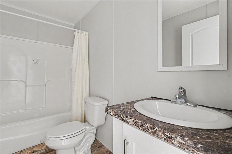 Welcome to this beautifully updated mobile home, perfectly situated on a spacious lot of 1.32 acres, offering the best of peaceful country living with easy access to city conveniences. Enjoy brand-new front and back decks, perfect for relaxing, entertaining, or taking in the serene surroundings. Inside, the spacious living room is filled with natural light, creating a warm and inviting atmosphere. The kitchen features an island with seating, stylish white cabinetry, newer appliances, a stunning apron-front stainless steel sink, and plenty of counter and cabinet space for all your needs. The bright dining area offers easy access to the back deck, ideal for indoor-outdoor living. A dedicated laundry room adds everyday convenience. The spacious primary suite is a private retreat, complete with an en-suite bath featuring dual sinks, a soaking tub, and a separate shower. Three additional generously sized bedrooms and a full bath provide plenty of space for everyone! Experience the charm of country living while staying close to shopping, dining, and major highways for an easy commute.