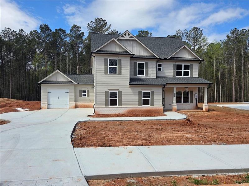 Built by Labb Homes, the Abigail plan (Lot 12) will impress you with included features that are upgrades elsewhere! From the minute you enter, you will view the open concept plan - allowing you an unimpeded view to the covered back porch with outdoor fireplace and gourmet kitchen and breakfast room, as well as the great room is complete with coffered ceilings, brick fireplace with raised hearth and decorative wood mantle. There are base cabinets with floating shelves to each side of the fireplace. The kitchen features an abundance of cabinets and large accent island adorned with quartz countertops. The kitchen also features stainless steel appliances including a double oven, dishwasher, microwave as well as a stainless farm sink. There is a secondary bedroom on the main as well as a full bath. The primary suite upstairs is very spacious and provides opportunities for a sitting room or reading nook. The bathroom features