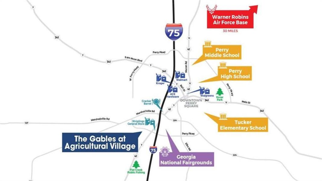 The Gables at Agricultural Village in Perry, Georgia is an incredible opportunity for attainable homeownership in a prime location just minutes from Robins Air Force Base, I-75 and Georgia National Fairgrounds. The Museum of Aviation with the Georgia Aviation Hall of Fame located just a short drive away in Warner Robins. Plus, this is the heart of Georgia's peach-growing country so you can take advantage of fresh home grown produce. The Gables at Ag Village is offering the Pearson floor plan. This is a 3 Bedroom 2.5 Bath Townhome with one car garage. The home has open concept living on the main floor with Luxury Vinyl Plank flooring. Kitchen with stainless steel appliances (stove, dishwasher and built-in microwave). Quarts counter tops in Kitchen and Marble tops in baths. Nice size Owner's suite, double sinks and large shower with glass doors in owner's bath. Two additional bedrooms, laundry and flex space on the second floor. Home has rear patio for grilling and entertaining. Seller is offering up to $10,000. toward closing cost with preferred lender. Stock photos - photos are not of actual home. It's a great time to secure your new home at introductory pricing.