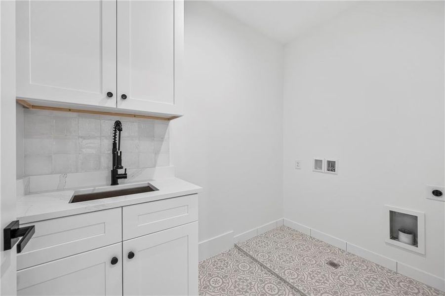 Outdoor living is just as inviting, with a covered back patio featuring a built in gas grill, outdoor sink, and a fenced backyard space ready to enjoy.