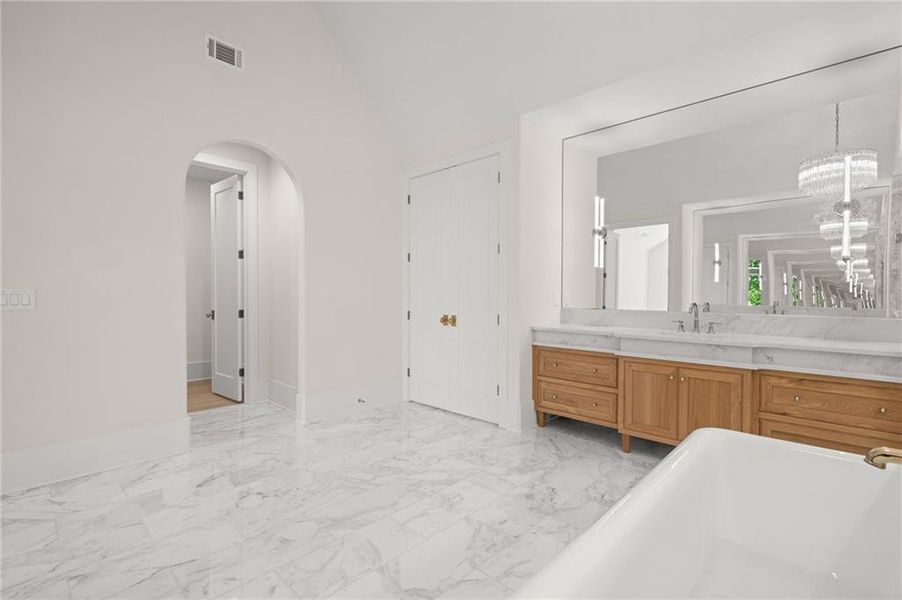 - Ceiling-VaultedWalk-In ClosetFoyerBuilt-in BookshelvesTray CeilingWalk-In PantrySeparate ShowerDouble Vanity