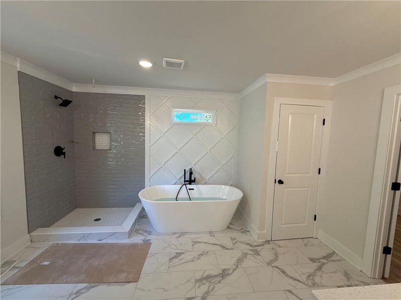 - Walk-In ClosetCrown MoldingFoyerCoffered CeilingTray CeilingBreakfast BarWalk-In PantryLoftSeparate ShowerDouble Vanity