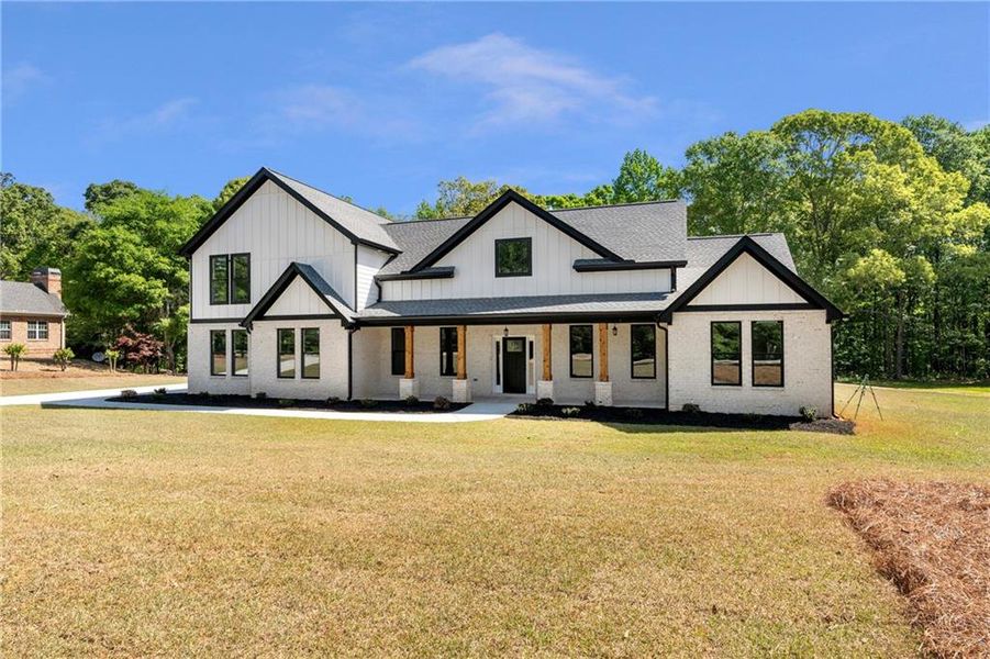 Welcome to this stunning new construction nestled in the charming Cambridge neighborhood, where timeless design meets contemporary comfort. A dramatic two-story foyer, illuminated by a striking chandelier, creates an unforgettable first impression as you step inside. The thoughtfully designed main level features an open-concept layout perfect for both everyday living and entertaining. The well-appointed kitchen overlooks the dining area and a fireside living room with soaring vaulted ceilings, creating a warm and inviting atmosphere. The spacious owner’s suite is a true retreat, offering a generously sized bedroom and a spa-inspired bathroom complete with a soaking tub, elegant walk-in shower, and refined finishes. Two additional main-level bedrooms share a full bath. A large walk-in pantry and a well-equipped laundry room further enhance the functionality of the main floor. Upstairs, you’ll find a private guest suite, a room ready to become a movie theater or home gym, and a versatile recreation room that could easily serve as a fifth bedroom. Offering the ease of one-level living with the added bonus of an expansive upper floor, this home truly has it all! Situated on a serene 2.01-acre lot, this property offers exceptional privacy and natural beauty. Enjoy peaceful mornings and relaxing evenings on the expansive patio, surrounded by the sights and sounds of nature. Located in Covington—known as “The Hollywood of the South”—this vibrant and growing community blends small-town charm with modern conveniences. With easy access to I-20 and minutes from Covington Square's local shops and restaurants, schools, the Cricket Frog Trail, and Lake Varner Reservoir, this home blends upscale living with the serenity of a setting designed for both recreation and relaxation.