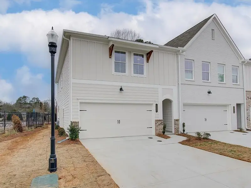 Traton Homes, Brooks elevation G, end unit! Ready July/August! Photos are not of the actual home, they're of another Brooks "G" from a different community & only serve as an example. One of the few remaining opportunities for an end unit in Cherokee Township—offering more natural light, added privacy, and a noticeably more open feel compared to interior units. This Brooks floor plan is already set apart with thoughtful upgrades that buyers will actually notice, including a modern electric fireplace as a focal point in the living area, full oak tread stairs, and crown molding throughout the main level for a more finished, elevated look. The kitchen features a clean, on-trend design with warm stained cabinetry paired with a contrasting painted island, creating a sharp, modern feel that shows extremely well. Upstairs, the owner’s suite includes a tiled shower with upgraded wall finishes and a built-in bench—details that add both function and a higher-end feel. Out back, the extended 16x8 patio provides real, usable outdoor space—something many townhomes simply don’t offer. For a limited time, buyers still have the opportunity to personalize design selections and finishes if they move quickly. Located in Cherokee Township with convenient access to Acworth, Woodstock, and major corridors, this is a strong combination of product, location, and value. End units are limited and consistently in high demand—don’t miss your chance to secure one before it’s gone. *All buyers must prequalify with Traton's approved lender, regardless of who they choose for their loan.