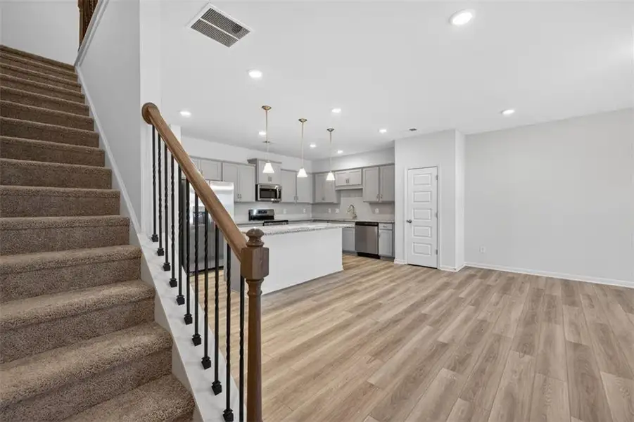Move-in Ready! The Ellison II plan by Smith Douglas Homes in the Jameson Towns community in Villa Rica, GA! This popular townhomeplan, offers a stylish and functional 3-bedroom, 2.5-bath layout designed for modern living. Step inside from the welcoming foyer into abright, open-concept main level featuring luxury vinyl plank flooring, a spacious great room with a sleek modern fireplace, and a kitchen with a large center island, granite countertops, upgraded cabinets, tile backsplash, stainless steel appliances, and a walk-in pantry.The kitchen opens directly to a rear patio and private yard, perfect for entertaining or relaxing outdoors. The open iron staircase on both floors leads to a luxurious primary suite complete with a tray ceiling, dual vanity bath, tiled walk-in shower, separate water closet, and largewalk-in closet. Two additional bedrooms, a shared hall bath, and a convenient laundry room complete the upper level. Enjoy 9-foot ceilings on both floors, creating an airy, spacious feel throughout. Residents will love the planned neighborhood amenities, including a pool with cabana, playground, and lawn maintenance included in the HOA, giving you more time to enjoy what matters most. Photos representative of plan not of actual home. Located just minutes from downtown Villa Rica, Starbucks, shopping, dining, and I-20, Jameson Towns offers unbeatable convenience and easy-maintenance living. Special seller incentives available with preferred lender!