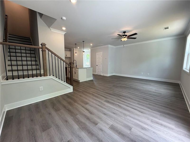 - AtticGreat RoomKitchenPowder RoomMudroomDining RoomFamily RoomOpen Concept FloorplanPrimary Bedroom Upstairs