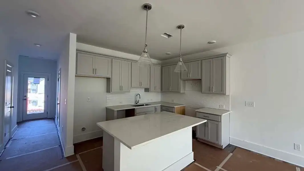 The Cedar floor plan is a spacious two-story townhome offering 1,507 square feet of thoughtfully designed living space. The main level features a chef’s kitchen with a large island that opens to the bright dining area and family room, perfect for everyday living and entertaining. Showcasing the Milan Signature Collection, the kitchen has 42" light grey cabinets, silver fixtures, quartz countertops, designer tile backsplash, pendant lighting, natural gas cooking, stainless steel built-in microwave and dishwasher, LED flush mount lighting, and durable 5" enhanced vinyl plank flooring throughout the entire home. Upstairs, you’ll find a versatile loft with open railing. The primary suite is filled with natural light and includes a spa-like bath with a tiled walk-in shower with frameless glass door, dual vanities, ample counter space, and extra storage.