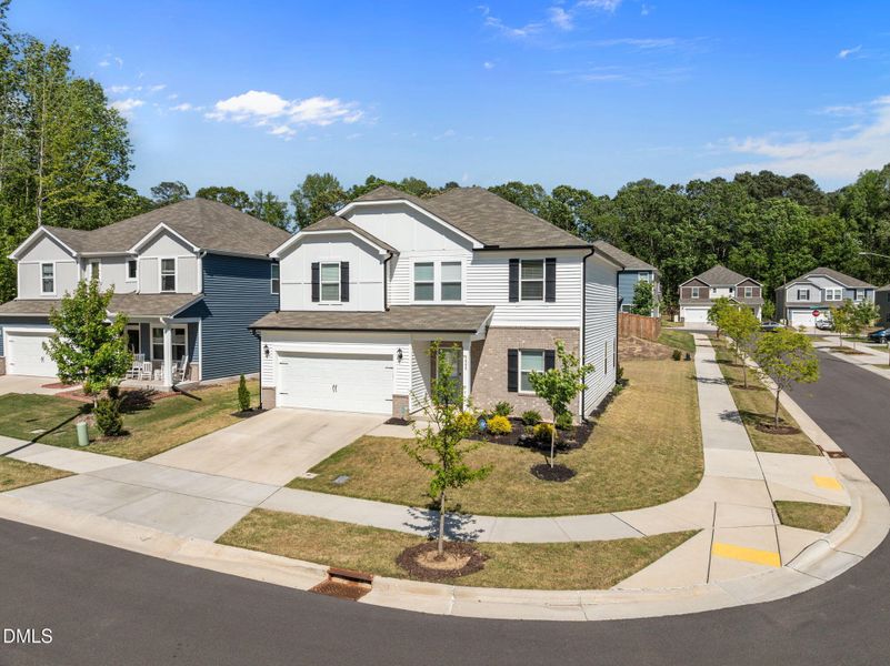 This beautiful corner lot home offers a spacious and thoughtfully designed layout with modern finishes throughout. The main level features durable LVP flooring and an open floor plan that seamlessly connects the large living room to the kitchen, perfect for both everyday living and entertaining.