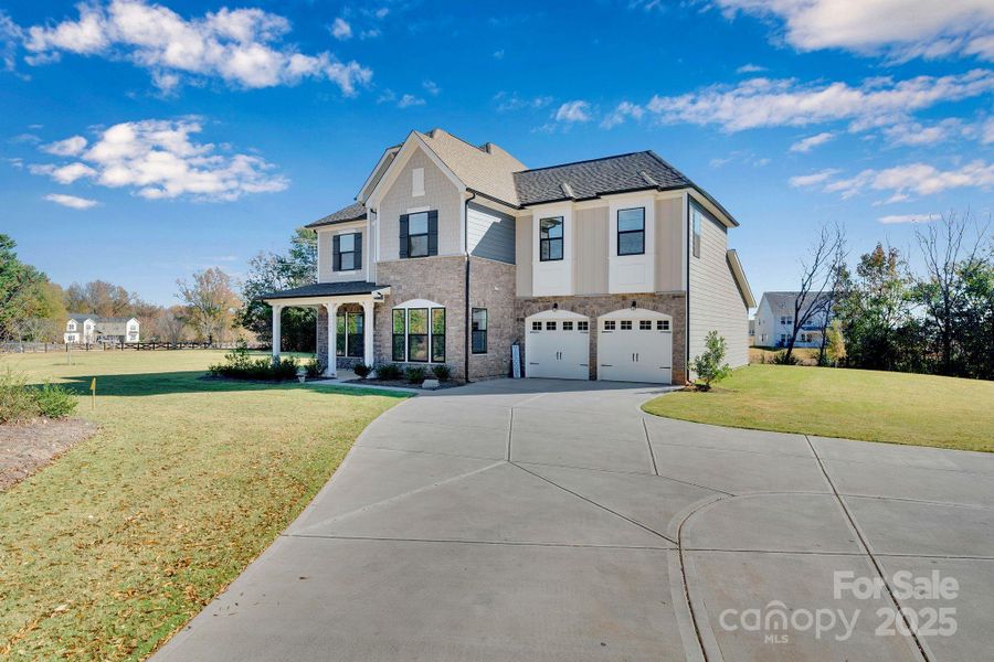 Why wait to build? Stunning 5 Bedroom, 4 Bath home on a 1.7 acre lot in Huntersville! This home offers a host of upgrades: a formal Dining Room with 38" Wainscoting, Crown Moldings and Cased Openings to Stylish Black Frame Windows with tinted glass. The Gourmet Kitchen offers an Oversized Island, Quartz Countertops, Gas Cooktop with an Undercabinet Hood, a built in Microwave and Stove and a pass-through Butler's Pantry. Family Room has a Fireplace and French Doors leading to a Covered porch to enjoy your morning coffee or for entertaining. Main Level also has a Guest Bedroom with a Full Bath. Upstairs features a generous sized Bonus Room, a Spacious Owner's Suite and a Spa-Like Primary Bathroom with an Oversized Shower and 2 Rain Shower Heads. This home also offers an abundance of storage and closet space. The Oversized Garage is perfect for bikes, toys or a workshop area and there is also an additional parking pad alongside the extended driveway. This home is still under Builder Warranties to provide extra security and comfort for its new owner. Please note: There is a proposed road widening project on NC 73. Please ask the Listing Agent for more details. Buyers Agents Welcome!
