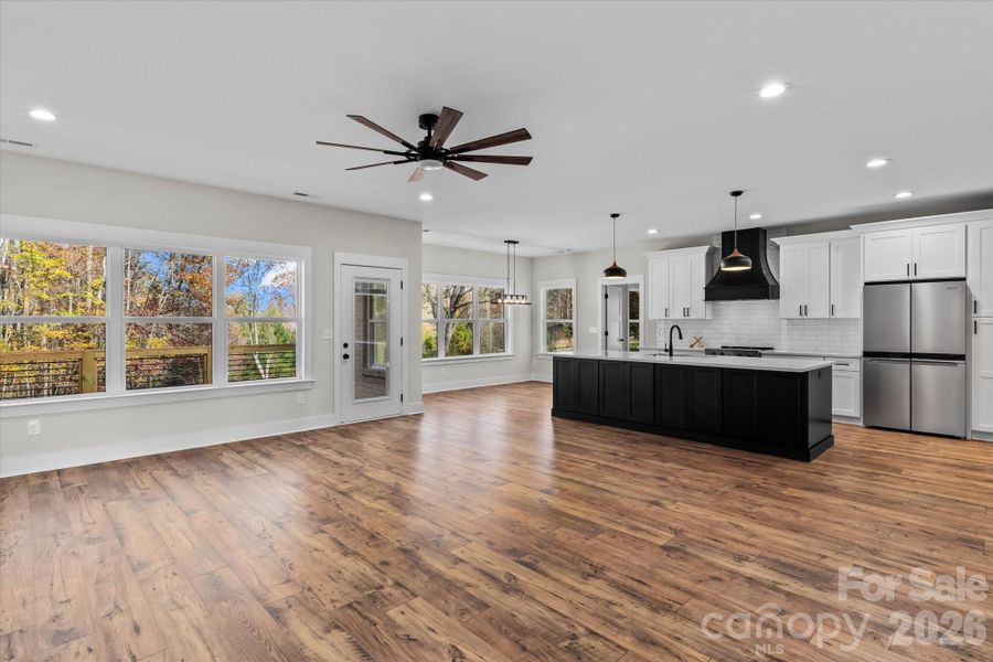 Flowing seamlessly into the open living area, this layout was made for real life—whether you're entertaining, gathering with family, or just enjoying a quiet night in. The living room is anchored by a beautiful brick fireplace, creating a warm and inviting focal point while remaining fully open to the kitchen and dining area—perfect for both everyday living and hosting.